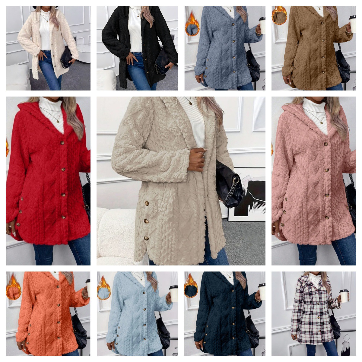 2025秋冬 独立站欧美女式连帽 双面绒开衫长袖休闲保暖外套
