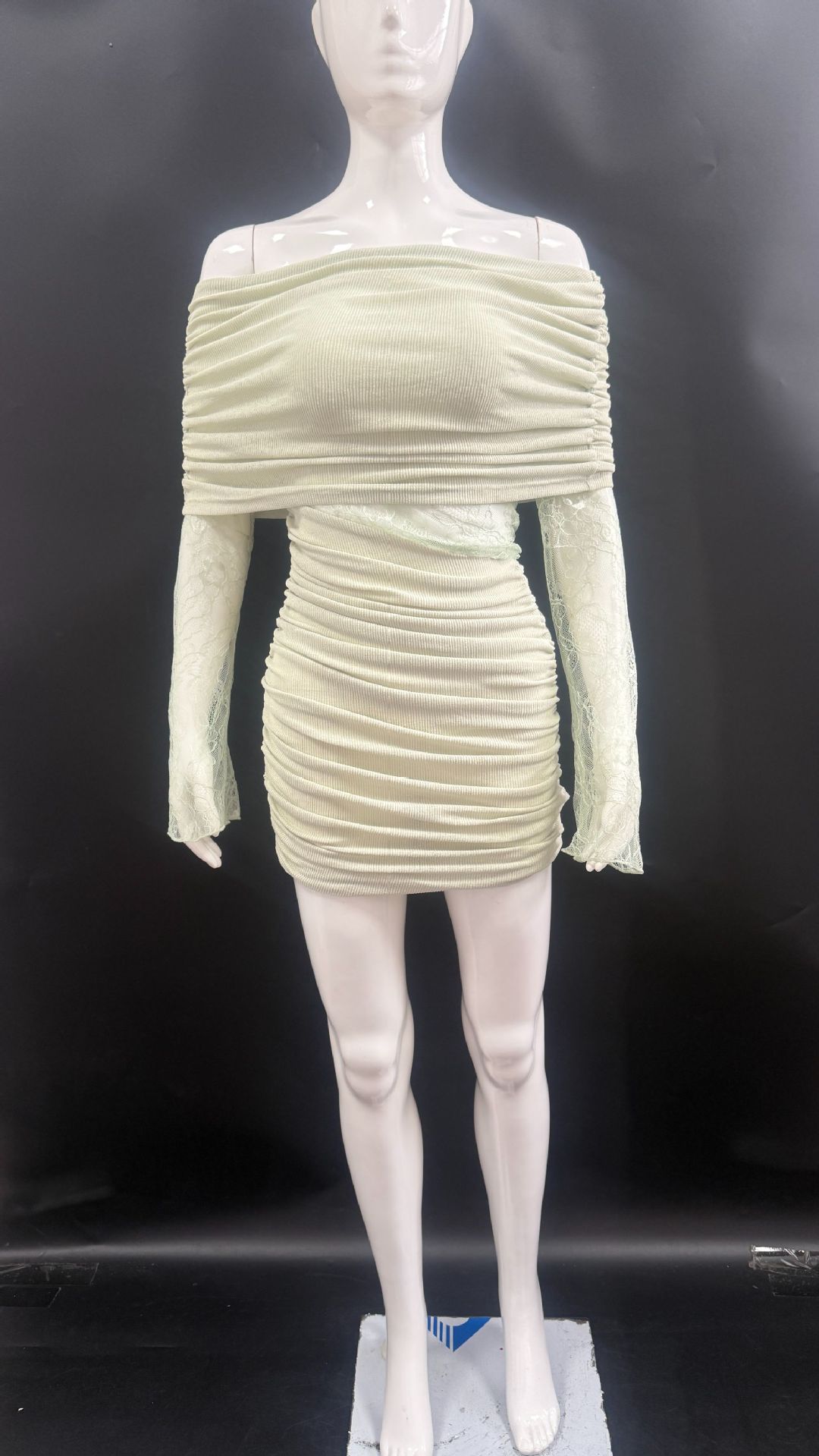 2025跨境女装爆款时尚蕾丝拼接针织短裙辣妹性感欧美一字肩连衣裙批发
