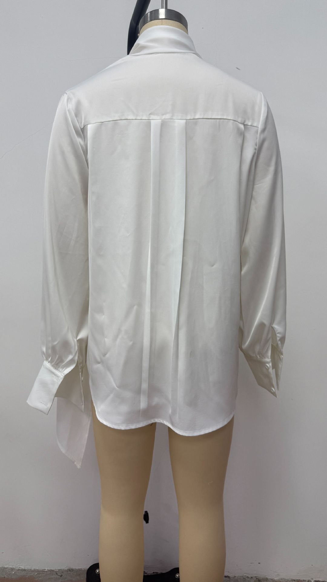 欧美女装新款法式优雅飘带上衣衬衫气通勤套头长袖衬衣女装